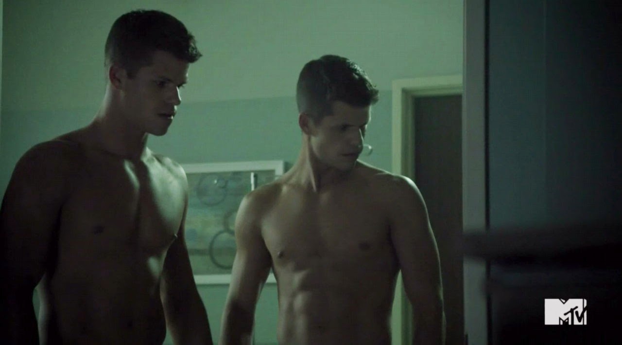 Robbie Amell sin camiseta en la cama en Tomorrow People